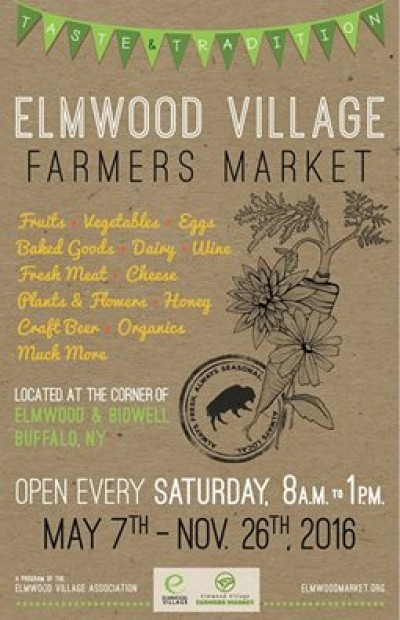 A program of the Elmwood Village Association, the market features approximately 40 vendors selling fruits, vegetables, baked goods, organics, fresh meat, cut flowers, wine, craft beer, eggs, dairy, honey, cheese and much more. Products available at the market are always fresh, seasonal and local. New vendors in 2016 include Barrel & Brine, Belleview Farms, Lloyd Tortillas and Farmer Pirates.