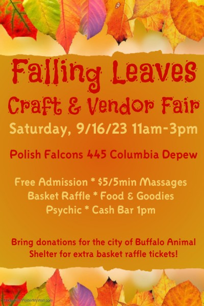 Come on our to support your local small businesses. We have some fabulous and unique crafters as well as some of your favorite vendors. There's something for everyone! Basket Raffle! $5/5 min mini massages! Psychic! Goodies! Cash Bar at 1pm. Bring donations for the City of Buffalo Animal Shelter for extra tickets after initial purchase. No need to be present to win. Bookings only through Maria at eventpreneurpro@gmail.com