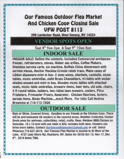 Famous Flea Market Outdoor Sale & VFW 8113 Closing Sale