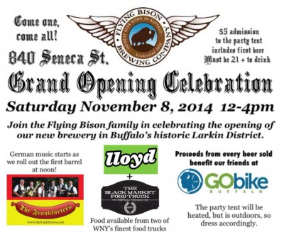 So, the wait is over. After months of construction and hard work, Flying Bison Brewing Company has a brand new home on Seneca St. in the beautiful, historic Larkin District! With 14 years of memories in our previous home on Ontario St., we are ready to begin a new chapter in our brewery's history. This is cause for celebration, and celebrate we shall!