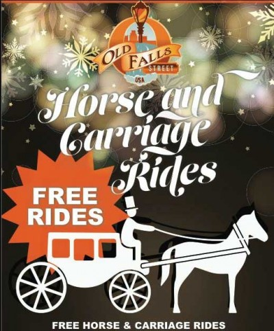 Old Falls Street, USA, is once again hosting free horse and carriage rides on Friday, Dec. 23, from 5-9 p.m.