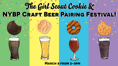 Join us on March 8 at our first annual Girl Scout Cookie and NYBP Craft Beer Pairing Festival! We will be partnering up with the Girl Scouts of WNY to bring you an incredible Girl Scout Cookie and Beer Flight where you can enjoy some of the cookie flavors paired with our finest Craft!