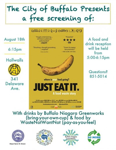 341 Delaware Ave. Buffalo, NY 14202A food and drink reception by WasteNotWantNot and Buffalo Niagara GreenWorks will kick off the evening at 5:00pm and be followed by a free screening of the movie "Just Eat It - A Food Waste Story." It all takes place inside the gorgeous Hallwalls.
