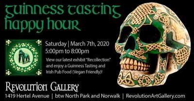 St. Patrick's Day is around the corner - stop by Revolution Gallery this Saturday for a HAPPY HOUR with a Guinness Tasting, Irish Pub Food (Vegan Friendly!), and our latest exhibit “Recollection.”