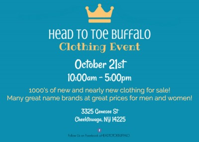 Follow us on Facebook at Head To Toe Buffalo Clothing Event. 20% of proceeds will go to Samaritan’s Purse to benefit victims of Hurricane Harvey, Irma and Maria. The remaining portion will help the children of New Creation Fellowship Academy in Cheektowaga.