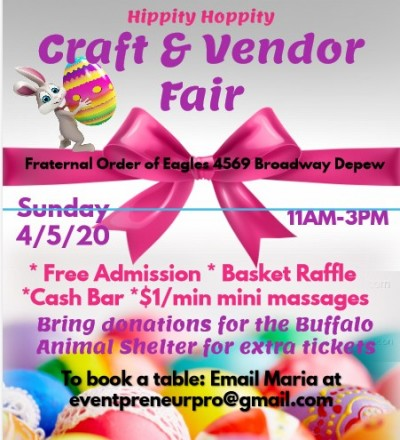 Come on out to support your local small businesses. We have some fabulous and unique crafters as well as some of your favorite vendors too! Looking for something a little different? We have psychic readings and $1/min massages available and a cash bar. FREE ADMISSION. 11AM-3PM. You don't need to be present to win the Basket Raffle. Bring donations for The Buffalo Animal Shelter for extra tickets. To book a table contact Maria eventpreneurpro@gmail.com