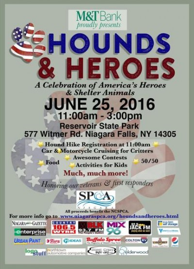 A day of red, white and blue fun and tribute to our brave veterans, first responders and shelter residents. Enjoy a classic car and motorcycle show, a motorcycle run, a hound hike around the park led by the Niagara County Mounted and K9 Sheriffs, hot dogs, hamburgers and beverages, live music, a bake sale, some select vendors – a dog and cat patriotic costume contest, an apple pie contest followed by an apple pie eating contest, 50/50, other surprise contests and tons of fun, kid stuff!