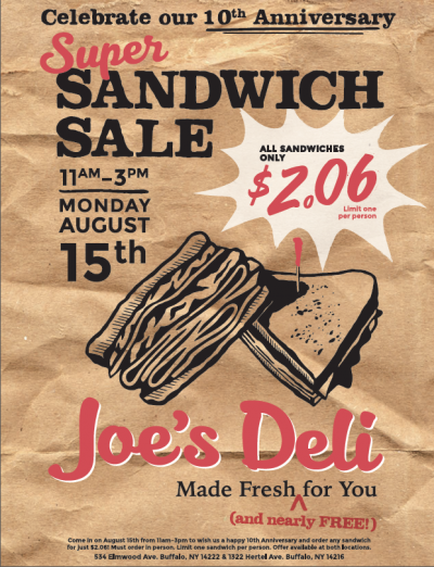 Joe's Deli 10th Anniversary Super Sandwich Sale