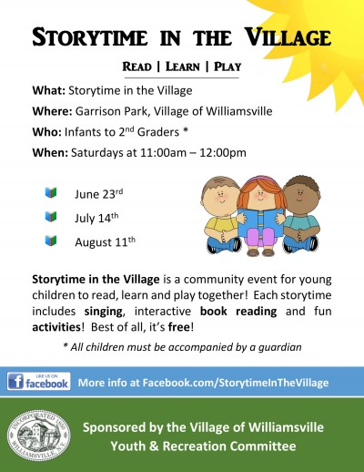 Storytime in the Village is a free community event for young children (infant - 2nd grade) to read, learn and play together! Each storytime includes singing, interactive book reading and fun activities!