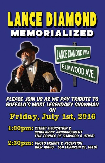 Lance Diamond Way street dedication at 1:00pm. The press conference is expected to last until 2:30pm at which time everyone is invited to GCR Audio at 564 Franklin Street for a photo exhibit and reception. Music is Art will announce plans for the Lance Diamond Memorial Scholarship.
