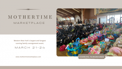 Mothertime Marketplace is Western NY's largest and longest-running family consignment pop-up sale. Our sales take place every Spring and Fall at the Hamburg Fairgrounds in the Grange Building. We have thousands of items for your family at up to 85% below typical retail prices all under one roof! Don't waste time driving from store to store or yard to yard when you can find everything your family needs at Mothertime Marketplace!