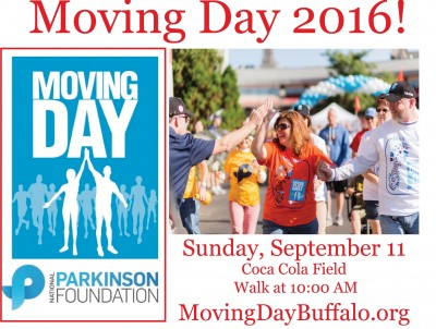 Join us for an easy 3 mile walk along Buffalo's waterfront! Moving Day is a walk to beat Parkinson's disease, a disease that greatly affects our region. You can walk with a team or solo; either way it's a great time! Join us on this day of movement and help us Beat Parkinson's!