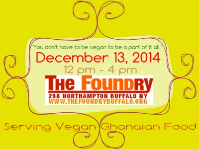 Nana Amma is serving Vegan Ghanaian food for the first time in Buffalo on behalf of Vegans For Africa. Eat delicious, hot and spicy traditional flavors for $5/plate at The Foundry's second Saturday. You don't want to miss this.