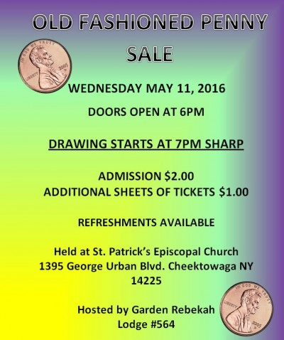 Old Fashion Penny Sale Hosted by Garden Rebekah Lodge 564 ~ Admission is $2.00, additional sheets of tickets are $1.00, refreshments available for sale!!