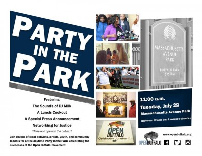 Celebrate Open Buffalo's efforts to build a city wide movement and change the future of Buffalo at this free BBQ with music by DJ Milk in the Massachusetts Avenue Park on Winter Street. A Press Conference at 11:00 am will be followed by the Community Cookout and celebration. All community activists and Buffalo enthusiasts are encouraged to attend and get involved!