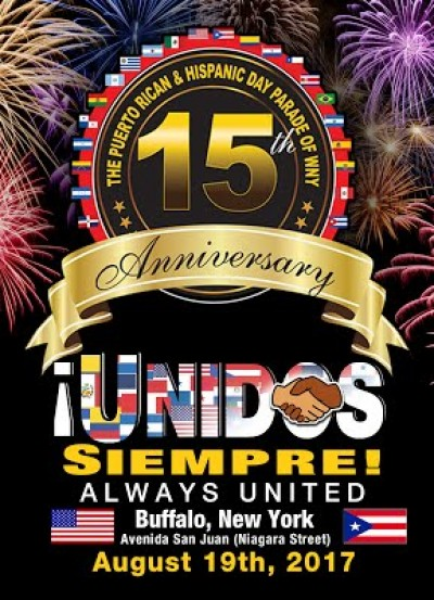 Mark your calendar and come celebrate the 15th Annual Puerto Rican and Hispanic Day Parade of WNY, Saturday, August 19th, 2017. The Flag will be raised at Noon, and the Parade starts at 1:00pm in front of Buffalo City Hall and will march north on Niagara Street (Avenida San Juan).