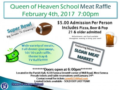 Meat Raffle, theme baskets, dinner packages, SuperBowl raffle, 50/50.