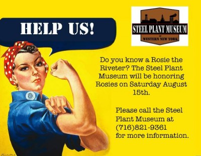If you know a living Rosie the Riveter, the Steel Plant Museum would like to honor them at this event. Please call us at (716) 821-9361 or email us at steelplantmuseumwny@gmail.com to find out more.