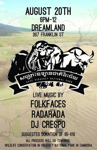Live music by Folkfaces, RadaRada and DJ Crespo, plus a charity auction and 50-50 drawing to benefit Cambodia's Virachey National Park, which is still home to a plethora of wildlife. Food by Pawlowski's Pierogi's and drinks will be available.