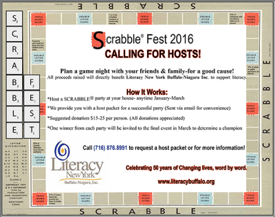 Hosts are needed for Scrabble Fest 2016! If you're a Scrabble lover -- and want a fun way to support literacy in our community - celebrate Scrabblefest 2016 with Literacy NY Buffalo-Niagara by hosting!