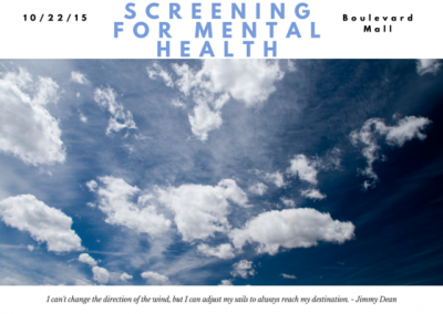The Mental Health Association of Erie County, Inc. will be offering free and anonymous screenings for depression, bipolar, anxiety, and PTSD at the Boulevard Mall Sears Court on Thursday, October 22nd from 10-3pm. The screening only takes a couple minutes; individuals will have the opportunity to speak with a clinician privately following each screening. If you have any questions, please contact Kelly at 716-886-1242 ext. 321 or kmiskovski@eriemha.org.