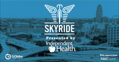 SkyRide, presented by Independent Health, is GObike Buffalo’s annual event and fundraiser bringing thousands of cyclists on a city-wide tour of historic locations, highway infrastructure and new bicycle facilities. Riders experience the scenic views of downtown Buffalo and the waterfront from the 110-foot-high Skyway and Olmsted’s parks and parkways by bicycle.