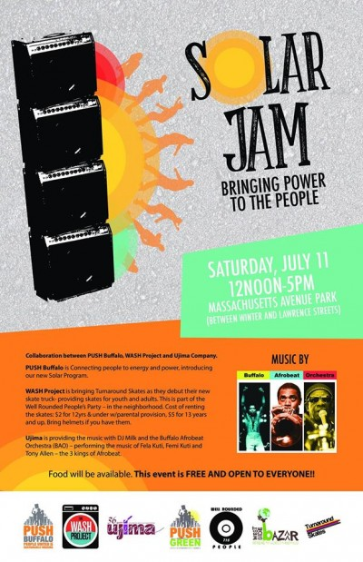 A celebration of a new solar program which promises to bring the power of the sun to WNY, featuring the Buffalo Afro-Beat Orchestra #PushGreen. Join PUSH Buffalo, Ujima Theater Co, the WASH Project and PUSH GREEN at this FREE, family-friendly party in the heart of the city. Activities for the kids include roller skating and inline skating, food, #solar workshops, solar tours, giveaways, and more!