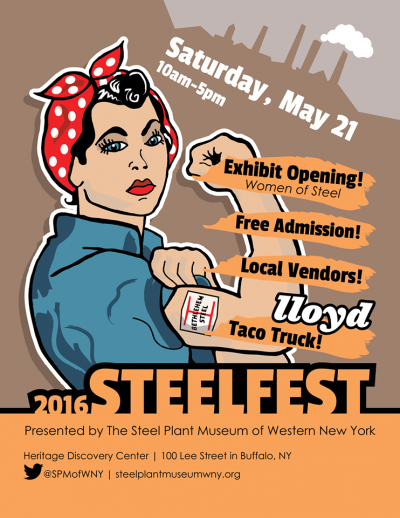 Women of Steel exhibit opening, plus local craftsmen and cultural organizations will be setting up tables with information and goods for sale at the 2nd Annual Steelfest in the parking lot of the Heritage DiscoveRY Center Buffalo.*