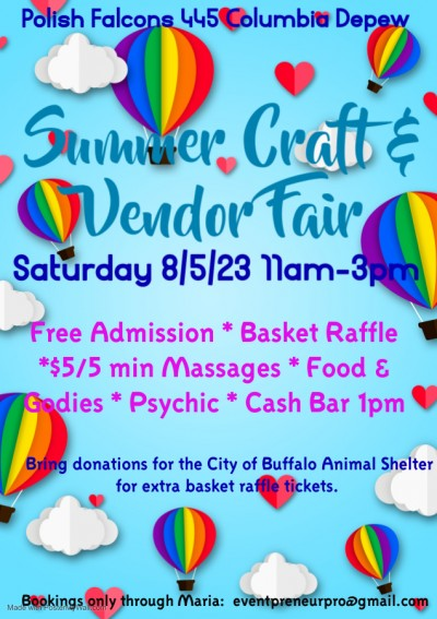 Come on out to support your local small businesses. We have some fabulous and unique crafters as well as some of your favorite vendors. There's something for everyone! Basket Raffle! $5/5 min mini massages! Psychic! Goodies! Cash Bar at 1!. Bring donations for the City of Buffalo Animal Shelter for extra tickets after initial purchase. No need to be present to win. Bookings only through Maria at eventpreneurpro@gmail.com