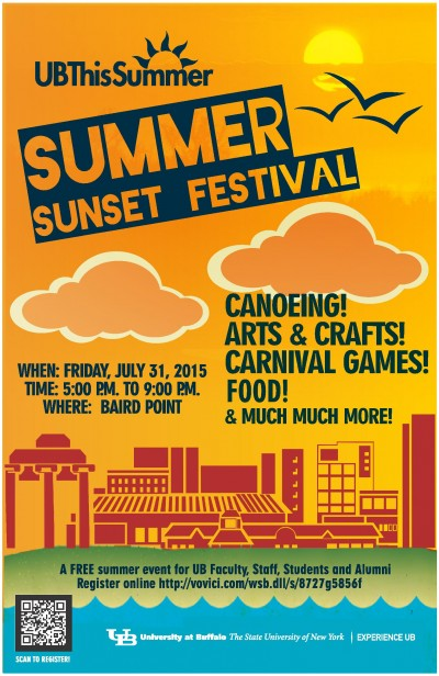 Celebrate the season at UB's first Summer Sunset Festival! Enjoy carnival games, crafts, food and canoeing on Lake LaSalle at this FREE, family-friendly event. After the festival, stick around for a