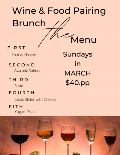 Join us for brunch every Sunday in March! Tickets are $40 and include a 5 course meal.