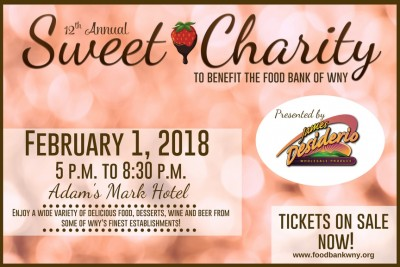 The 12th Annual Sweet Charity, to benefit the Food Bank of WNY, is back and bigger than ever before! This event is presented by James Desiderio Wholesale Produce and is an evening of savory food, sweet treats, wine, beer, spirits and coffee tastings from some of WNY’s finest establishments! Sweet Charity will feature silent and live auctions as well as an amazing jam-packed basket raffle! We’ve added additional parking within the WNED parking lot adjacent to the Adam’s Mark Hotel!
