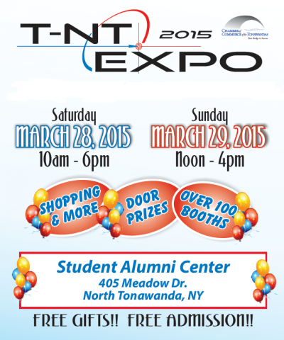 The Chamber of Commerce of the Tonawandas will be hosting their biennial T-NT Expo. It is being held on Saturday, March 28th from 10:00am to 6:00pm and Sunday, March 29th from 12:00pm to 4:00pm. It is one of the largest trade shows in the area and it is a family friendly event all should attend. The event is held over two days and admission is free. There are free gifts, shopping, door prizes and over 100 booths to discover. If you have any questions please contact Beckie Lombardy at 716-692-5120. You may also visit our website www.the-tonawandas.com. Plan on attending and we will see you there.