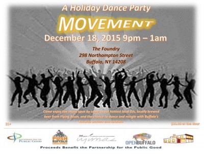 A dance party featuring some of Buffalo's best DJ's and live music to benefit the Partnership for the Public Good. It's sponsored by some of the area's #grassroots #socialjustice organizations doing really good work in this community. The #MovementParty2015 is one of Western and #BuffaloNY's longest running, annual, holiday traditions.