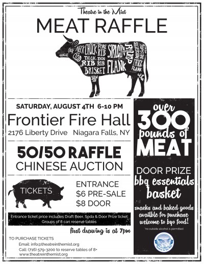 Theatre in the Mist will host their 2nd Annual Meat Raffle on Saturday, August 4th, 2018 from 6pm to 10pm at the Frontier Fire Hall located at 2176 Liberty Drive, Niagara Falls, NY 14304.
