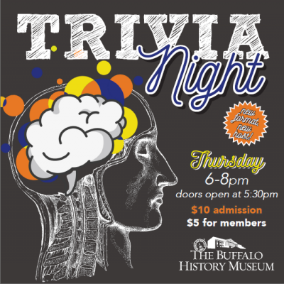 Test your knowledge of our city, pop culture, and beyond at the Museum’s Buffalo History trivia night! Bring a friend, or meet new friends for team-based Buffalo history trivia inside the State Court. Beer and wine will be available for purchase, and prizes will be awarded for the winners! Maximum of four members per team.