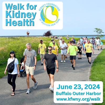 The Walk for Kidney Health is a community event to raise awareness of kidney disease, recognize people affected by kidney disease, honor organ donors and remember those we have lost. Sponsorships, team fundraising and individual donations also support the Kidney Foundation of WNY’s outreach, education, patient support and advocacy programs.