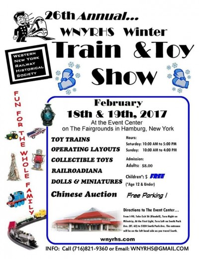 400 tables filled with model trains of all guages, toys, collectible toys, tain books and railroad artifacts. Admission $8 Children 12 & under free. Free parking.