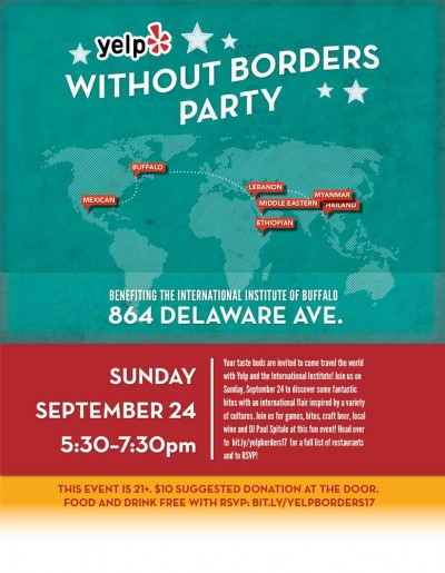 Follow Yelp on Twitter (@YelpBuffalo), Facebook (facebook.com/YelpBuffalo) and Instagram (yelpbuffalo) #YelpWithoutBorders!
