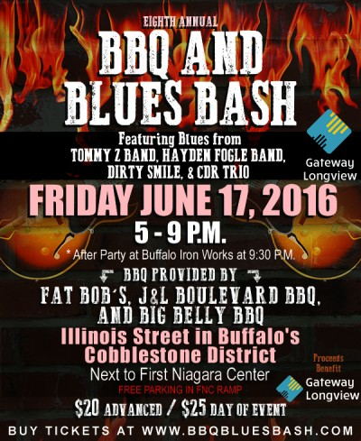 The 8th annual BBQ & Blues Bash is Friday, June 17 from 5-9pm in Buffalo’s historic Cobblestone District. Over 1,200 music enthusiasts from across WNY will eat, drink, and enjoy the best talent Buffalo has to offer during the region’s premier charitable blues event. Held on Illinois Street, next to First Niagara Center, guests will sample award-winning BBQ from local favorites including Fat Bob’s Smokehouse, BW's Smokin' Barrels Barbecue, Big Belly BBQ, & J&L Boulevard BBQ as they enjoy the festive atmosphere of Buffalo’s historic Cobblestone District. Sweet Melody’s Gelato and Wheatberry Bake Shop provide one-of-a-kind desserts for the Foundation’s largest fundraising celebration to support 3,600 children and families served annually by Gateway Longview.