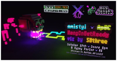 The BGS Spooktacular is haunting it's way over to the Gypsy Parlor this year, and Bit Crushed is coming with it! Come to the best Halloween party in town on Saturday, October 27th to show off your costumes, play some locally made games, and dance to the best chiptunes in Buffalo!