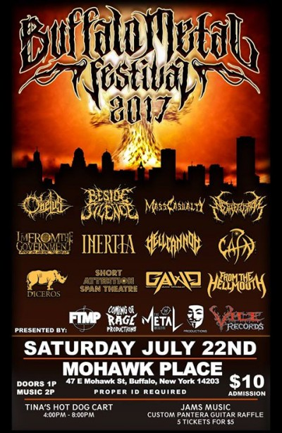 Together for the first time Chad Grant of Mass Casualty, Coming of RAGE Productions, FTMP Events, The Metal & The Masked Promoter team up to bring you Buffalo's first annual metal fest. Twelve local Buffalo metal bands from various subgenres gather to put on a killer show. Being held this summer July 22nd at Mohawk Place. $10 at the door. Ages 18 and up. Doors open at 1:00 pm, music starts at 2:00pm and continues late into the night. Come out and mosh with all your local favorites.