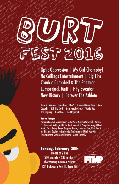 It's time to celebrate Greg Burt's creation 'FTMP Events / For The Music Productions' 4 year anniversary with the next installment of BurtFest! This year, we're taking over The Waiting Room with over 40 acts spread over 3 stages throughout one giant day! From Pop to Rock, Hip Hop to Electronic, & many more! Get ready for great times, vibes, and of course some of the best music Buffalo, NY & beyond has to offer!