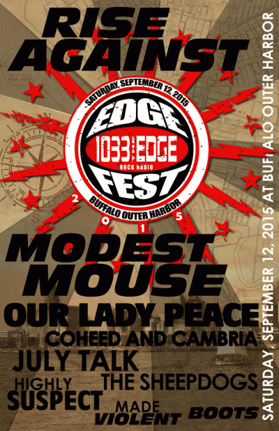 Performances by Rise Against, Modest Mouse, Coheed and Cambria with Highly Suspect, Boots, and Made Violent.