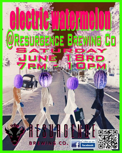 Come enjoy a night of originals & your favorite cover songs performs by emerging alt-jam/indie-rock band, Electric Watermelon! Impossible to have a bad time at Resurgence! The best bubble hockey I've ever seen, muptiple corn-hole boards, over-sized Jenga and Connect Four, Loganberry beer, and more.. You can't go wrong! SEE YOU THERE!