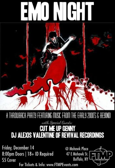 The night will be filled with music from bands such as: Fall Out Boy, Brand New, My Chemical Romance, Paramore, Yellowcard, Taking Back Sunday, The Used, From First To Last, Alexisonfire, Simple Plan, The Ataris, The Red Jumpsuit Apparatus, Motion City Soundtrack, Bowling For Soup, Panic! At The Disco, AFI, Senses Fail, Hawthorne Heights, Saosin, Chiodos, & more!