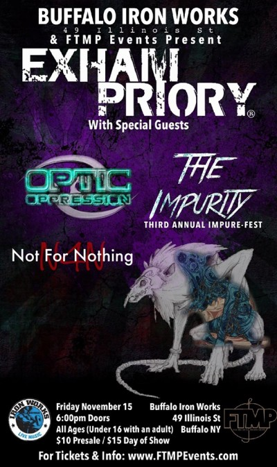 Exham Priory, Optic Oppression, The Impurity, & Not For Nothing