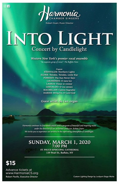 Harmonia continues its fourteenth season with a program of beautiful and inspiring music under the direction of our acclaimed conductor, Robert Duerr. We invite you to experience the professional artistry of Western New York's premier vocal ensemble in the captivating atmosphere of candlelight.