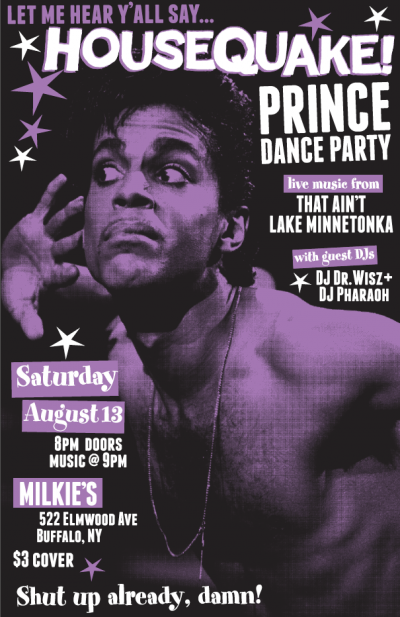 Celebrate the life and music of Prince! The funkiest DJ's in the land will be spinning Prince's music from the deepest tracks to his biggest hits. Dance the night away with the band, That Ain't Lake Minnetonka, who will be performing music from a rare 1982 Prince concert. $3 at the door.