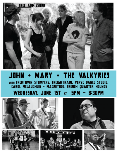 The Opening Night Extravaganza features six acts, all representing local music nonprofits: John and Mary & the Valkyries (Sportsmens Americana Music Foundation); Fredtown Stompers (Music is Art); Freightrain (Buffalo Music Hall of Fame, Blues Society of WNY); Verve Dance Studio (Young Audiences of WNY); Carol McLaughlin & Magnitude (Colored Musicians Club, Community Music School); and the French Quarter Hounds (Music is Art).